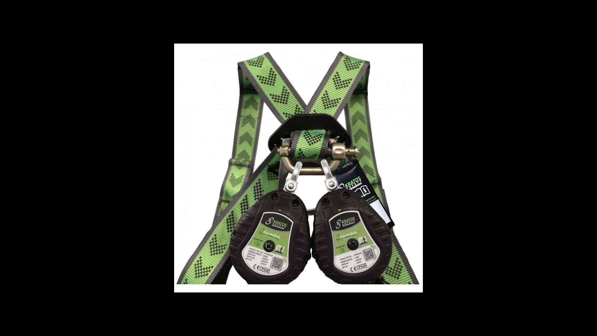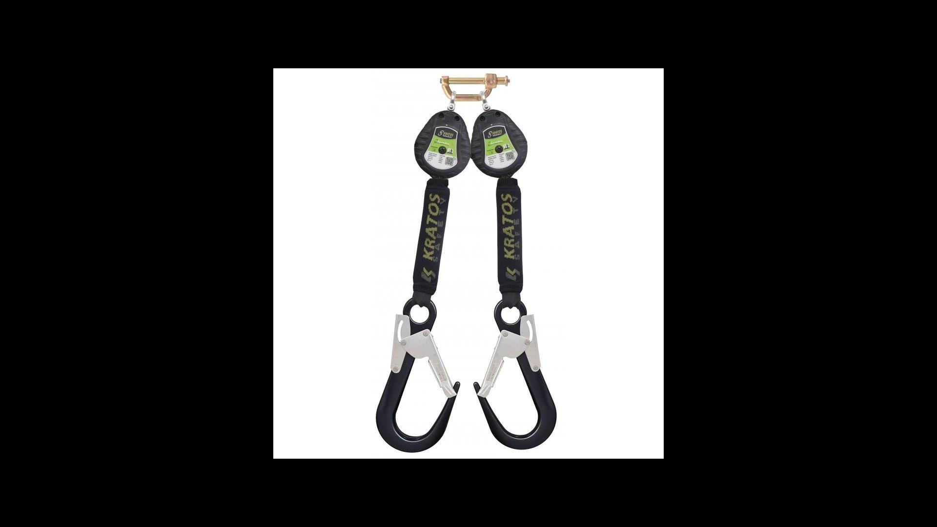Bevestigingsconnector Kratos Safety. Verbind de Olympe-S2 uittrekbare vallijnen (FA 20 502 02 of FA 20 503 02) eenvoudig met de kruising van de rugbanden van uw harnas. Deze connector biedt een veilige, snelle en comfortabele verbinding, waardoor u met een gerust hart kunt werken op hoogte.
