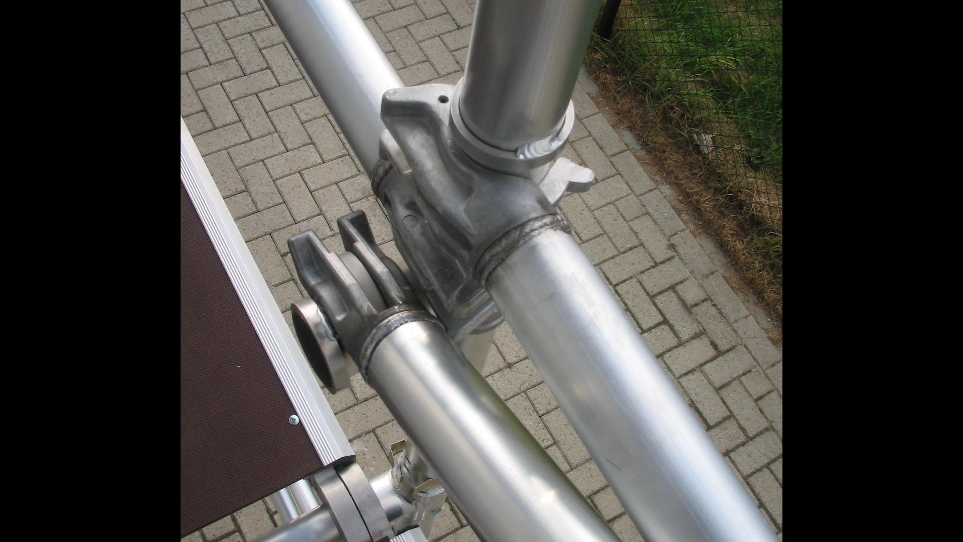 Gevelsteiger 75 cm 10 x 4 meter - 40m2, onze opbouwframes zijn gemaakt van een zeer hoogwaardige aluminium legering met een wanddikte van 2,0 mm. De doorloopframes zijn voorzien van koppelstukken waarop de standaard diagonaal schoren worden bevestigd.