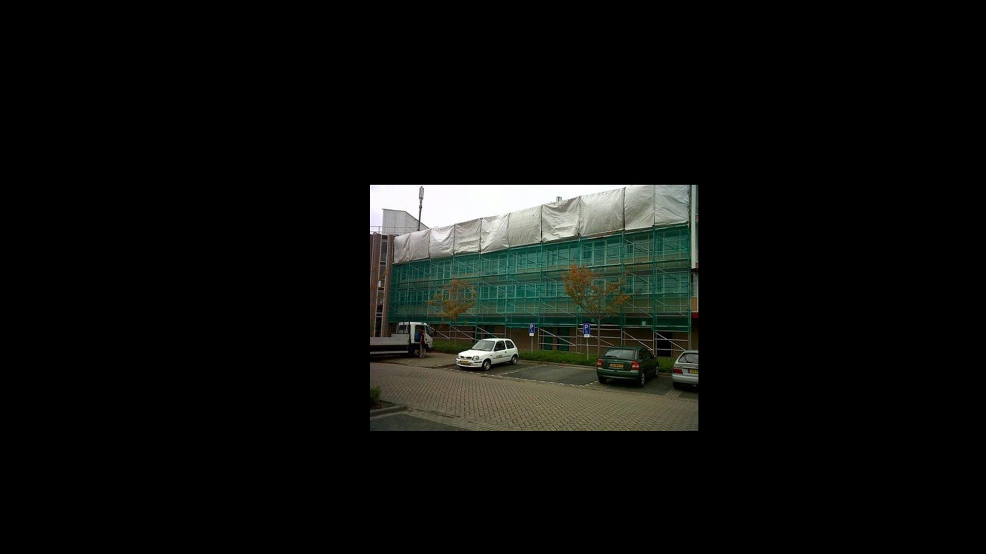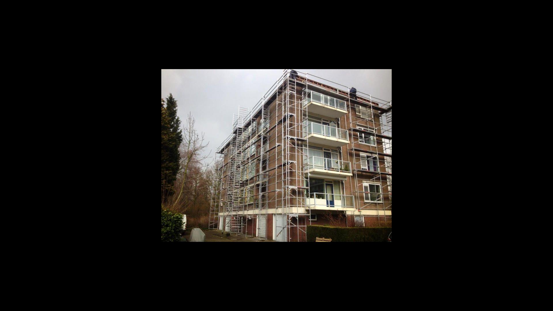 Gevelsteiger 75 cm 10 x 8 meter - 80m2,het unieke van het concept is dat de opbouwframes bovenhands worden opgebouwd, waardoor er altijd een leuning op het werkplatform aanwezig is.