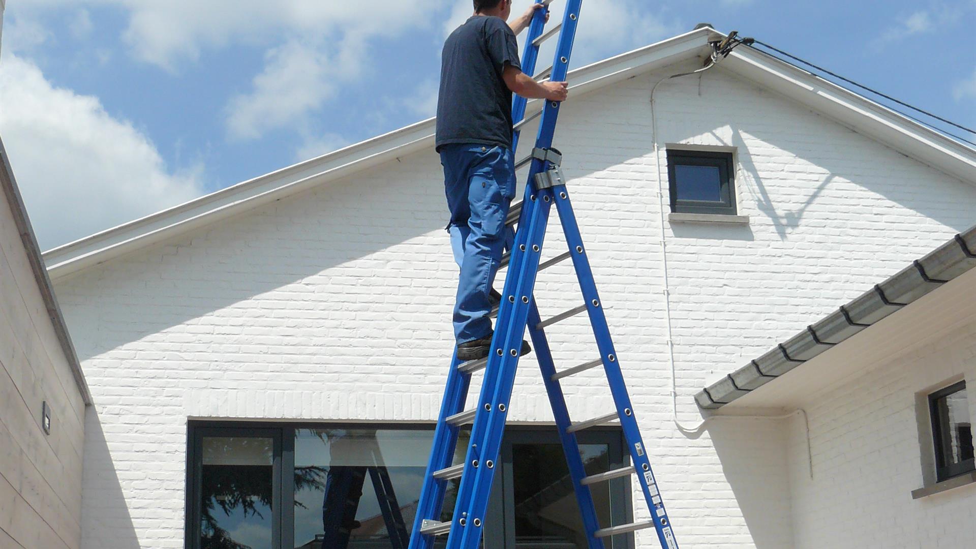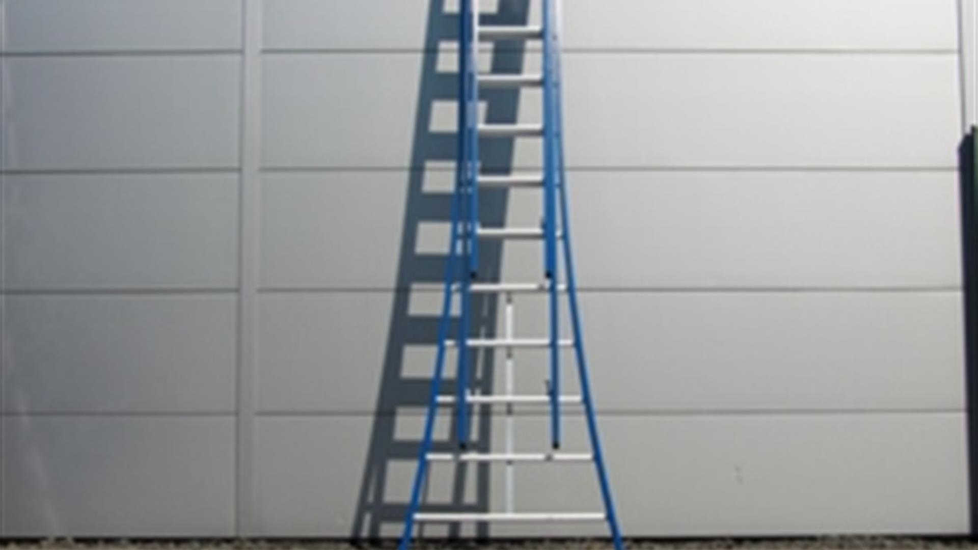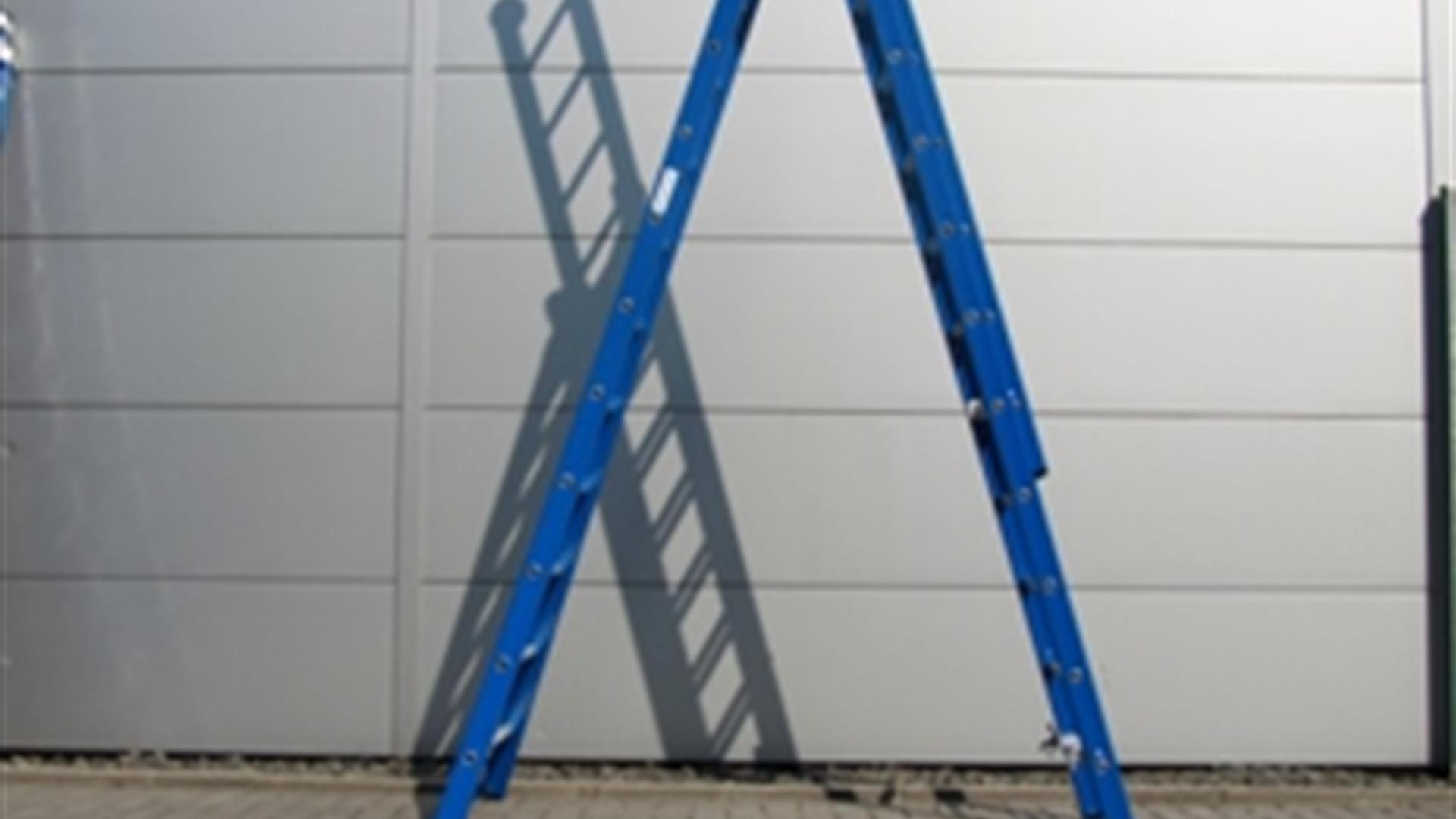 DAS Blauwe Atlas ladders driedelige uitvoeringen. Bij dit type ladder heeft u geen last van vuile handen van het aluminium. 10 jaar garantie termijn, echte kwaliteits ladders.