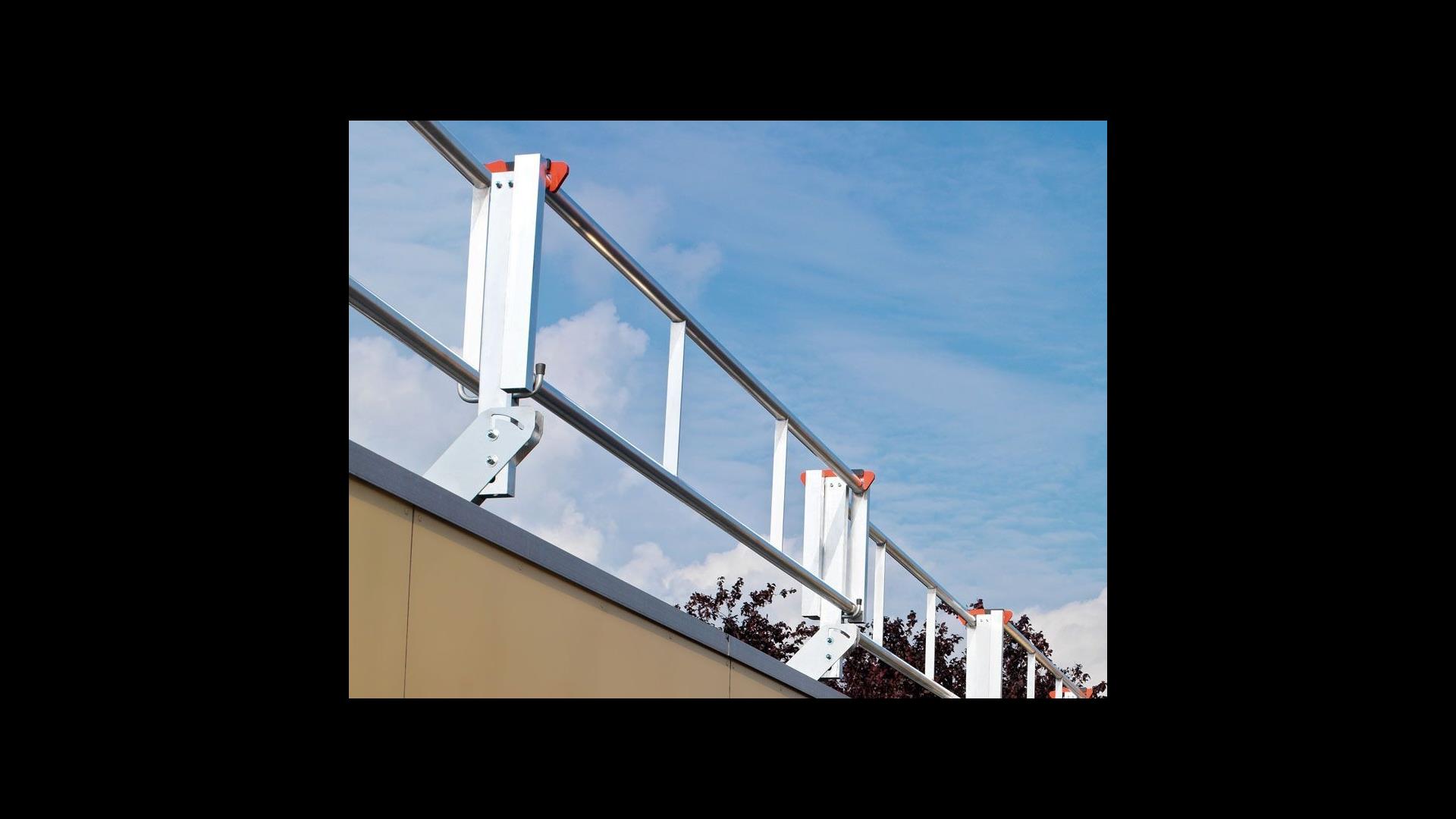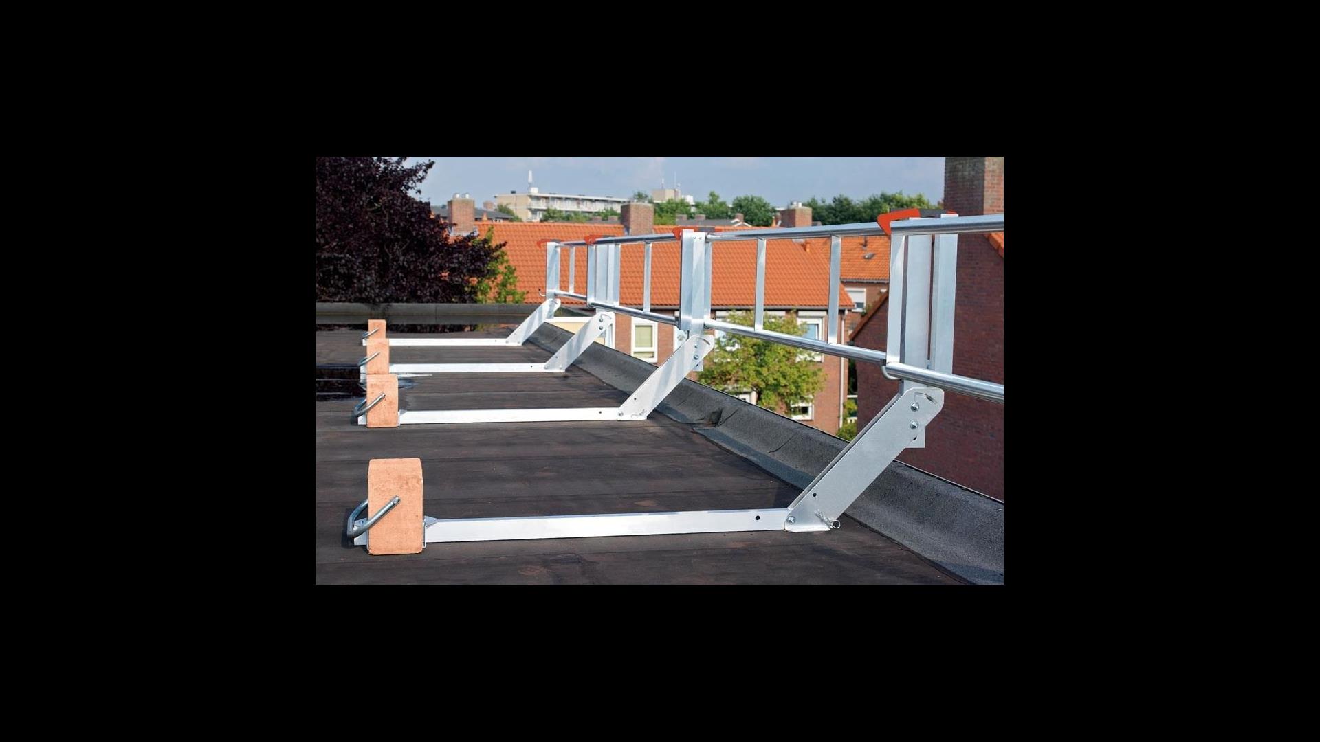 RSS dakrandbeveiliging plat dak Compact ( 60), door zijn breedte van 60 cm neem dit hekwerk maar weinig ruimte in op het dak, zodat de rest van het dak optimaal kan worden benut.